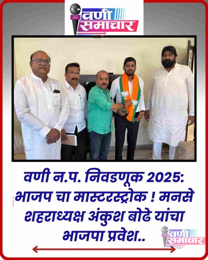 वणी नगरपरिषद निवडणूक २०२५ : भाजप चा मास्टरस्ट्रोक ! मनसे शहराध्यक्ष अंकुश बोढे यांचा भाजपा प्रवेश..