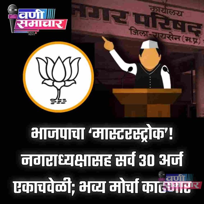 वणी न.प. निवडणूक २०२५: भाजपाचा ‘मास्टरस्ट्रोक’! आज सर्व २९ नगरसेवक + १ नगराध्यक्ष अर्ज एकाचवेळी; भव्य मोर्चा काढणार, जनतेची प्रतीक्षा संपली! अन्य पक्षांना ‘शॉक’!
