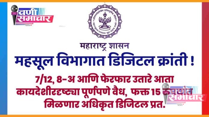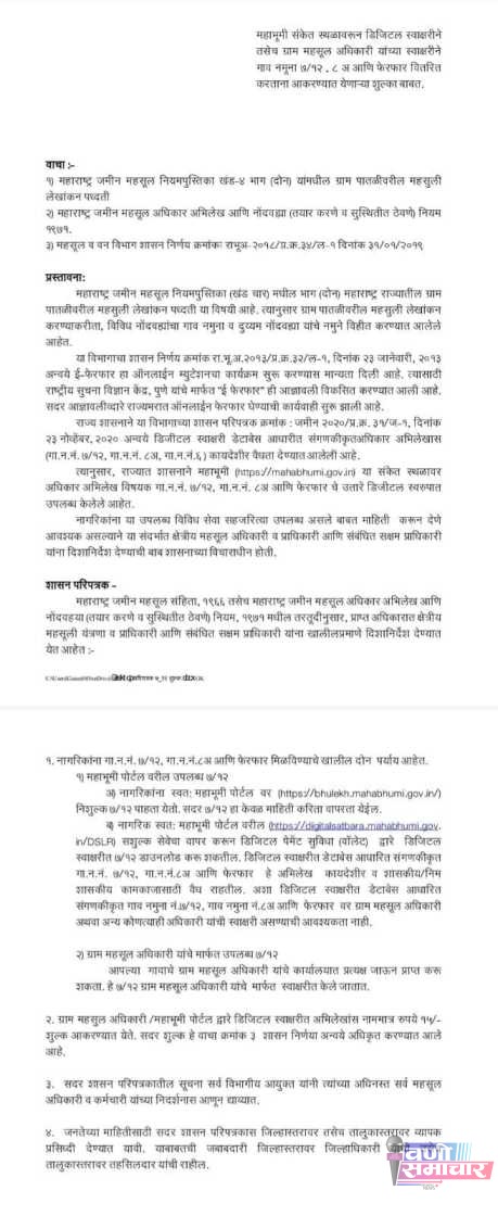 आता केवळ १५ रुपये शुल्क भरून नागरिक महसूल विभागाच्या https://bhulekh.mahabhumi.gov.in या संकेतस्थळावरून किंवा महाऊर्जा ॲपवरून डिजिटल उतारा डाउनलोड करू शकतील. हे डिजिटल उतारे सर्व सरकारी-निमसरकारी कार्यालये, बँका, सहकारी संस्था तसेच न्यायालयीन कामांसाठी पूर्णपणे ग्राह्य धरले जातील.