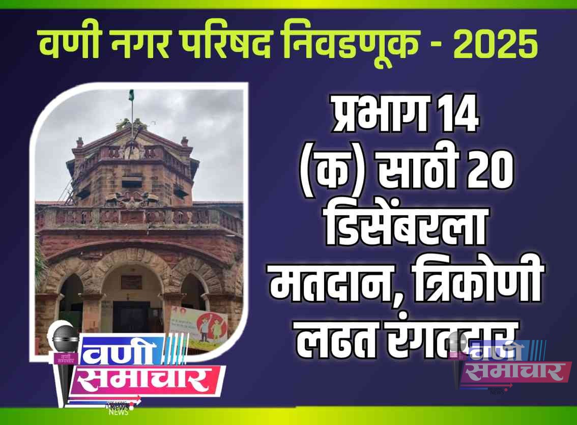 (▪︎संदर्भ : यापूर्वीचा अहवाल – वणी नगरपरिषद निवडणुकीत महत्त्वपूर्ण बदल : प्रभाग क्र. १४ ची ‘क’ जागा पुढे ढकलली, ‘अ’ आणि ‘ब’ वर २ डिसेंबरलाच मतदान https://wanisamachar.com/2025/12/01/2185/)