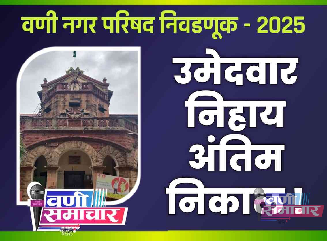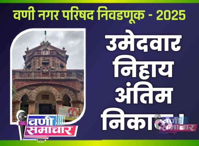 рд╡рдгреА рдирдЧрд░рдкрд░рд┐рд╖рджреЗрдЪреНрдпрд╛ рд╕рд╛рд░реНрд╡рддреНрд░рд┐рдХ рдирд┐рд╡рдбрдгреБрдХреАрдд рджрд┐. реирез рдбрд┐рд╕реЗрдВрдмрд░ рд░реЛрдЬреА рдорддрдореЛрдЬрдгреА рдкрд╛рд░ рдкрдбрд▓реНрдпрд╛рдирдВрддрд░, рдЙрдореЗрджрд╡рд╛рд░ рдирд┐рд╣рд╛рдп рдкрдбрд▓реЗрд▓реЗ рдорддрджрд╛рди рдЦрд╛рд▓рд┐рд▓ рдкреНрд░рдорд╛рдгреЗ рдЖрд╣реЗ;