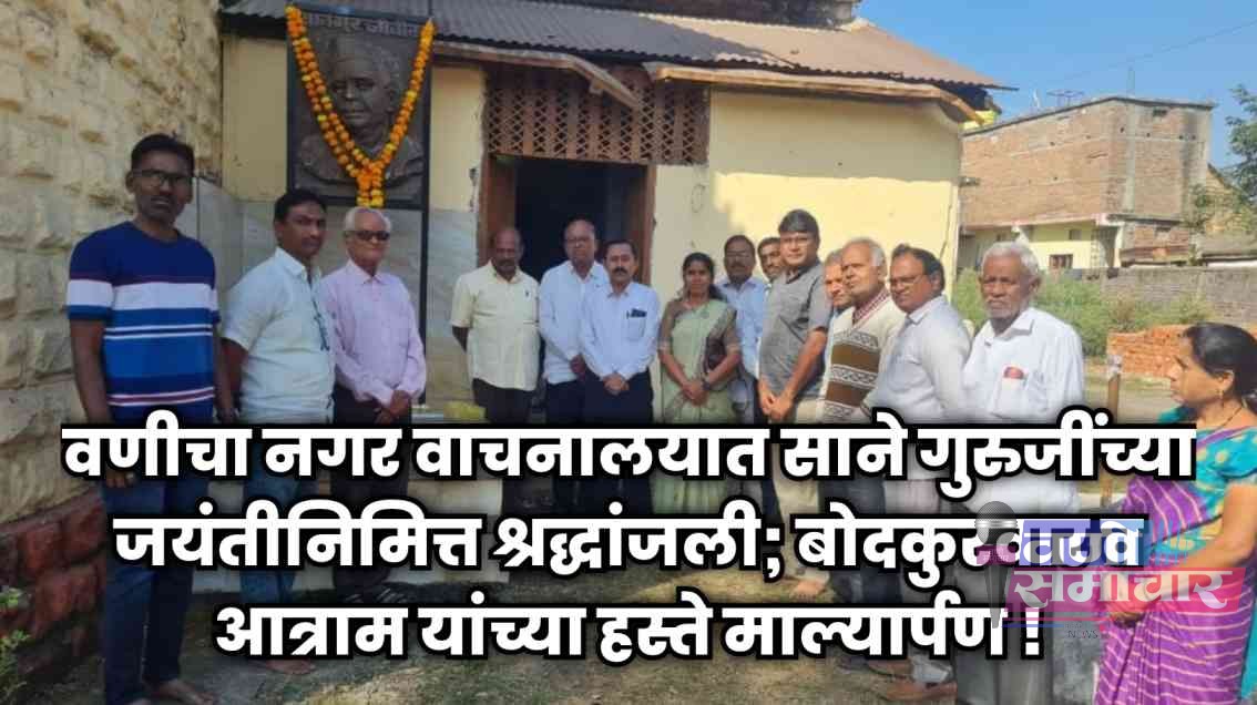 рд╡рдгреАрдЪрд╛ рдирдЧрд░ рд╡рд╛рдЪрдирд╛рд▓рдпрд╛рдд рд╕рд╛рдиреЗ рдЧреБрд░реБрдЬреАрдВрдЪреНрдпрд╛ рдЬрдпрдВрддреАрдирд┐рдорд┐рддреНрдд рд╢реНрд░рджреНрдзрд╛рдВрдЬрд▓реА; рдмреЛрджрдХреБрд░рд╡рд╛рд░ рд╡ рдЖрддреНрд░рд╛рдо рдпрд╛рдВрдЪреНрдпрд╛ рд╣рд╕реНрддреЗ рдорд╛рд▓реНрдпрд╛рд░реНрдкрдг┬а