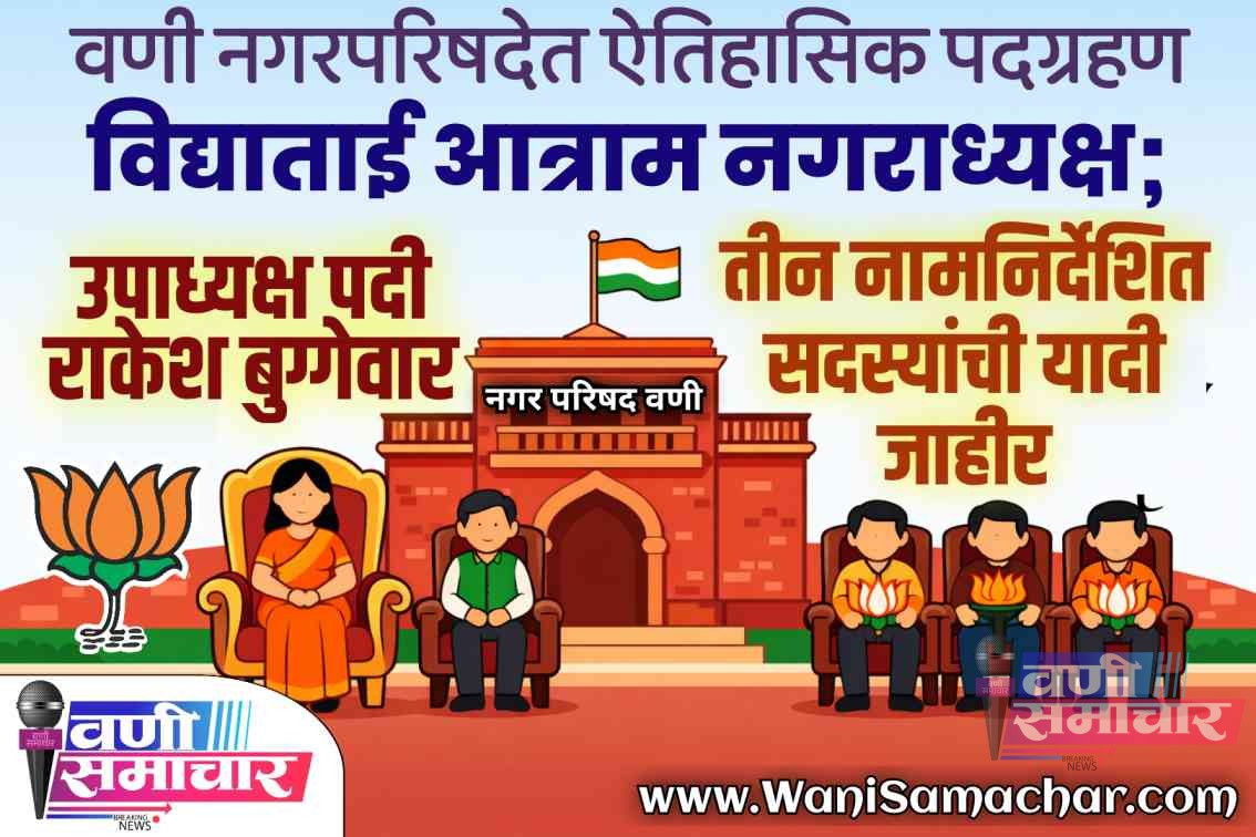 वणी नगरपरिषदेत ऐतिहासिक पदग्रहण: विद्याताई आत्राम नगराध्यक्ष; उपाध्यक्षपदी राकेश बुग्गेवार, तीन नामनिर्देशित सदस्यांची यादी जाहीर !
