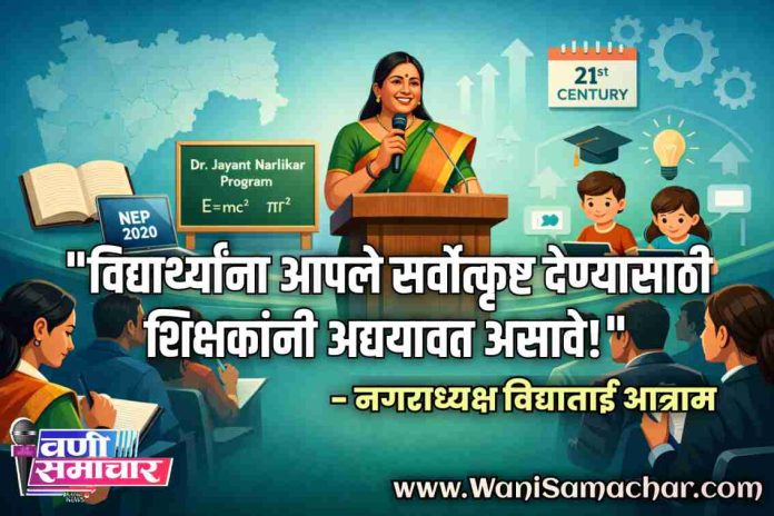 реирезрд╡реЗ рд╢рддрдХ рд╣реЗ рд╕реНрдкрд░реНрдзреНрдпреЗ рдЖрд╣реЗ. рдпреЗрдереЗ рдХреНрд╖рдгрд╛рдХреНрд╖рдгрд╛рд▓рд╛ рдЬреНрдЮрд╛рдирд╛рдЪрд╛ рдкреНрд░рд╕реНрдлреЛрдЯ рд╣реЛрдд рдЖрд╣реЗ. рдЕрд╢рд╛ рд╕реНрдерд┐рддреАрдд рдирдЧрд░ рдкрд░рд┐рд╖рдж рд╢рд╛рд│рд╛рдордзреНрдпреЗ рд╢рд┐рдХрдгрд╛рд░реА рдореБрд▓реЗ рдпрд╛ рд╕реНрдкрд░реНрдзреЗрдд рдХреБрдареЗрд╣реА рдорд╛рдЧреЗ рд░рд╛рд╣реВ рдирдпреЗ рдпрд╛рд╕рд╛рдареА рд╢рд┐рдХреНрд╖рдХрд╛рдВрдиреА рдЖрдкрд▓реНрдпрд╛ рд╡рд┐рджреНрдпрд╛рд░реНрдереНрдпрд╛рдВрдирд╛ рддреБрдордЪреНрдпрд╛ рдХрдбреЗ рдЕрд╕рд▓реЗрд▓реЗ рд╕рд░реНрд╡реЛрддреНрддрдо рджреЗрдгреНрдпрд╛рд╕рд╛рдареА рддреБрдореНрд╣реА рд╕реНрд╡рддрдГ рдЕрджреНрдпрдпрд╛рд╡рдд рдЕрд╕рд▓реЗ рдкрд╛рд╣рд┐рдЬреЗ рдЕрд╕реЗ рдкреНрд░рддрд┐рдкрд╛рджрди рд╡рдгреА рдирдЧрд░ рдкрд░рд┐рд╖рджреЗрдЪреНрдпрд╛ рдЕрдзреНрдпрдХреНрд╖рд╛ рд╡рд┐рджреНрдпрд╛рддрд╛рдИ рдЖрддреНрд░рд╛рдо рдпрд╛рдВрдиреА рдХреЗрд▓реЗ. рддреНрдпрд╛ рдирдЧрд░ рдкрд░рд┐рд╖рдж рд╢рд┐рдХреНрд╖рдг рд╡рд┐рднрд╛рдЧрд╛рдЪреНрдпрд╛ рд╡рддреАрдиреЗ рдирдЧрд░ рдкрд░рд┐рд╖рдж рд╢рд╛рд│рд╛ рдХреНрд░рдорд╛рдВрдХ 7 рдордзреНрдпреЗ рдЖрдпреЛрдЬрд┐рдд рд╢рд┐рдХреНрд╖рдг рдкрд░рд┐рд╖рджреЗрдЪреНрдпрд╛ рдЙрджреНрдШрд╛рдЯрди рдкреНрд░рд╕рдВрдЧреА рдЙрджреНрдШрд╛рдЯрдХ рдореНрд╣рдгреВрди рдмреЛрд▓рдд рд╣реЛрддреНрдпрд╛.