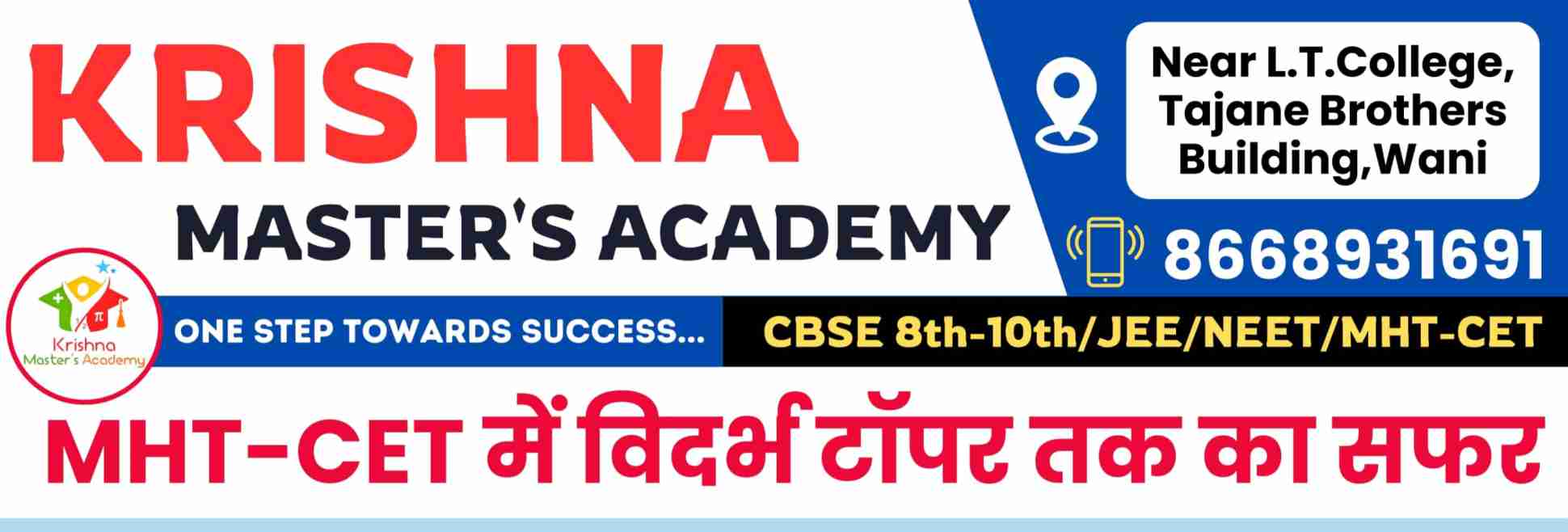 Krishna MasterтАЩs Academy рд╣реА рдХреЗрд╡рд│ рдХреЛрдЪрд┐рдВрдЧ рдХреНрд▓рд╛рд╕ рдирд╛рд╣реА, рддрд░ рдпрд╢рд╛рдЪреА рд╡рд┐рд╢реНрд╡рд╕рдиреАрдп рдкреНрд░рдХреНрд░рд┐рдпрд╛ рдЖрд╣реЗ. CET рдЕрд╕реЛ рд╡рд╛ CBSE, рднрдХреНрдХрдо рдкрд╛рдпрд╛, рдирд┐рдпрдорд┐рдд рд╕рд░рд╛рд╡ рдЖрдгрд┐ рддрдЬреНрдЬреНрдЮ рдорд╛рд░реНрдЧрджрд░реНрд╢рди рдпреЗрдереЗ рдПрдХрддреНрд░ рдорд┐рд│рддреЗ. рд╡рдгреАрддреАрд▓ рд╡рд┐рджреНрдпрд╛рд░реНрдереНрдпрд╛рдВрд╕рд╛рдареА рд╣реА рдЦрд░реЛрдЦрд░рдЪ рдПрдХ рд╕реЛрдиреЗрд░реА рд╕рдВрдзреА рдЖрд╣реЗ тАУ рдЖрдЬрдЪ рдкреНрд░рд╡реЗрд╢ рдШреНрдпрд╛ рдЖрдгрд┐ рдпрд╢рд╛рдЪреА рдкрд╛рдпрд░реА рдЪрдврд╛ !