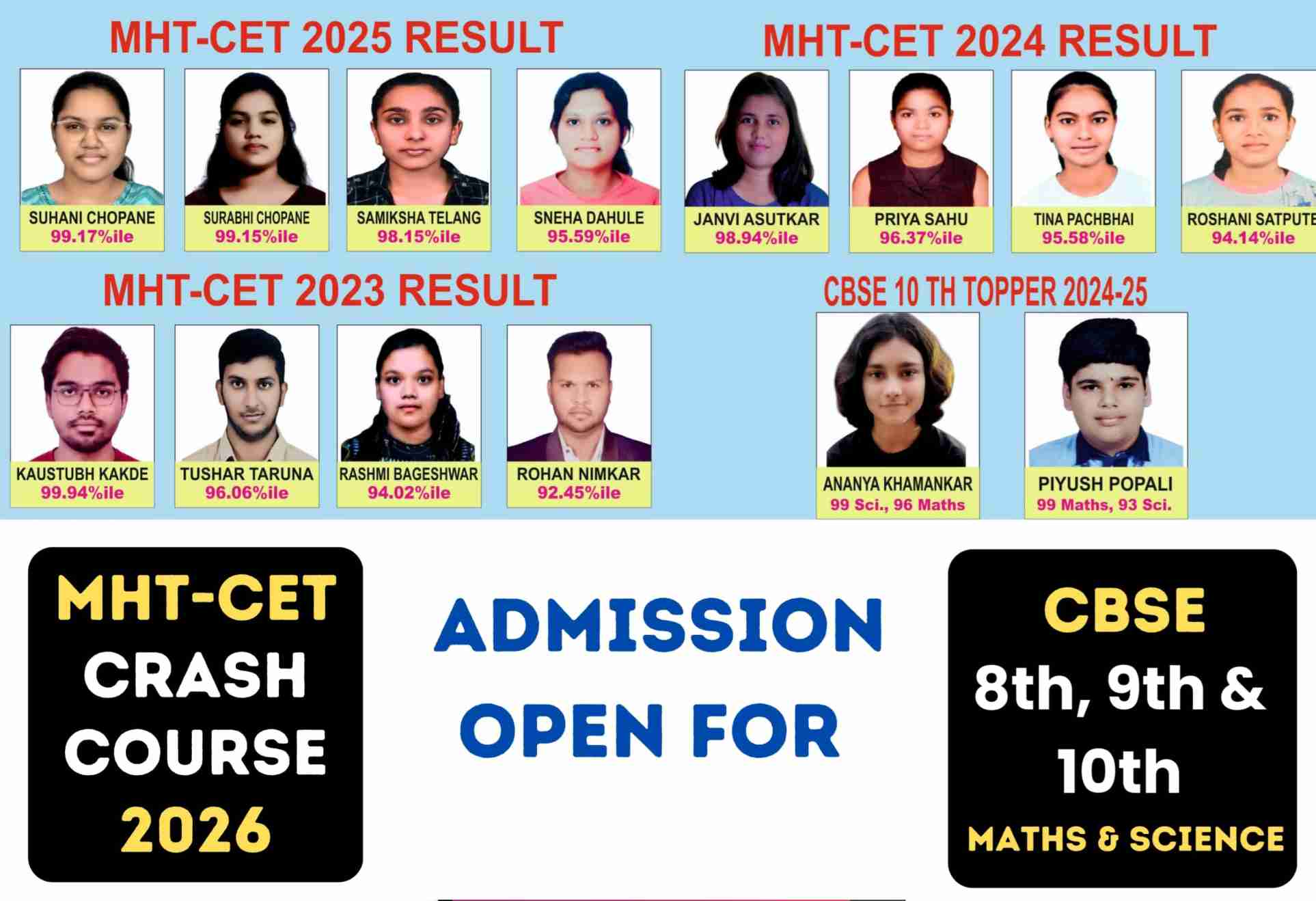 • MHT-CET 2025: рд╕реБрд╣рд╛рдиреА рдЪреЛрдкрдгреЗ (99.17%ile), рд╕реБрд░рднреА рдЪреЛрдкрдгреЗ (99.15%ile) рдЖрдгрд┐ рд╕рдореАрдХреНрд╖рд╛ рддреЗрд▓рдВрдЧ (98.15%ile) рдпрд╛рдВрдиреА рдЕрднреВрддрдкреВрд░реНрд╡ рдпрд╢ рдорд┐рд│рд╡рд▓реЗ рдЖрд╣реЗ.
