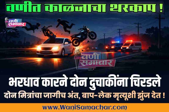 ЁЯЫ╡ЁЯЪЩ : рд╡рдгреАрдд рдХрд╛рд│рдЬрд╛рдЪрд╛ рдерд░рдХрд╛рдк ! рднрд░рдзрд╛рд╡ рдХрд╛рд░рдиреЗ рджреЛрди рджреБрдЪрд╛рдХреАрдВрдирд╛ рдЪрд┐рд░рдбрд▓реЗ; рджреЛрди рдорд┐рддреНрд░рд╛рдВрдЪрд╛ рдЬрд╛рдЧреАрдЪ рдЕрдВрдд, рдмрд╛рдк-рд▓реЗрдХ рдореГрддреНрдпреВрд╢реА рдЭреБрдВрдЬ рджреЗрдд !