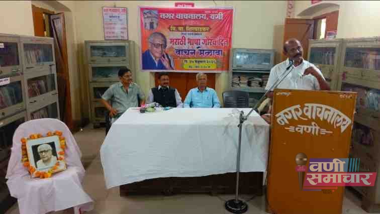 рдЬреНрдЮрд╛рдирдкреАрда рдкреБрд░рд╕реНрдХрд╛рд░ рд╡рд┐рдЬреЗрддреЗ рдХрд╡реА рдХреБрд╕реБрдорд╛рдЧреНрд░рдЬ рдпрд╛рдВрдЪрд╛ рдЬрдиреНрдорджрд┐рд╡рд╕ ‘рдорд░рд╛рдареА рднрд╛рд╖рд╛ рдЧреМрд░рд╡ рджрд┐рди‘ рдореНрд╣рдгреВрди рд╕рдВрдкреВрд░реНрдг рдорд╣рд╛рд░рд╛рд╖реНрдЯреНрд░рд╛рдд рдЙрддреНрд╕рд╛рд╣рд╛рдд рд╕рд╛рдЬрд░рд╛ рдХреЗрд▓рд╛ рдЬрд╛рддреЛ. рдпрд╛рдЪ рдирд┐рдорд┐рддреНрддрд╛рдиреЗ рд╡рдгреА рдпреЗрдереАрд▓ рдРрддрд┐рд╣рд╛рд╕рд┐рдХ рдирдЧрд░ рд╡рд╛рдЪрдирд╛рд▓рдпрд╛рдд рдПрдХрд╛ рд╡рд┐рд╢реЗрд╖ ‘рд╡рд╛рдЪрди рдореЗрд│рд╛рд╡реНрдпрд╛рдЪреЗ’ рдЖрдпреЛрдЬрди рдХрд░рдгреНрдпрд╛рдд рдЖрд▓реЗ рд╣реЛрддреЗ. рдпрд╛ рдЙрдкрдХреНрд░рдорд╛рдЪреНрдпрд╛ рдорд╛рдзреНрдпрдорд╛рддреВрди рдорд░рд╛рдареА рднрд╛рд╖реЗрдЪреЗ рд╕рдВрд╡рд░реНрдзрди рдЖрдгрд┐ рд╡рд╛рдЪрди рд╕рдВрд╕реНрдХреГрддреА рдЬреЛрдкрд╛рд╕рдгреНрдпрд╛рдЪрд╛ рд╕рдВрджреЗрд╢ рджреЗрдгреНрдпрд╛рдд рдЖрд▓рд╛.