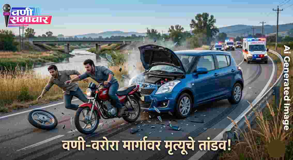 рд╡рдгреА-рд╡рд░реЛрд░рд╛ рд░рд╛рдЬреНрдпрдорд╛рд░реНрдЧрд╛рд╡рд░ рдмреБрдзрд╡рд╛рд░реА рджреБрдкрд╛рд░реА рдПрдХ рдХрд╛рд│рдЬрд╛рдЪрд╛ рдерд░рдХрд╛рдк рдЙрдбрд╡рдгрд╛рд░рд╛ рднреАрд╖рдг рдЕрдкрдШрд╛рдд рдШрдбрд▓рд╛. рднрд░рдзрд╛рд╡ рд╡реЗрдЧрд╛рдиреЗ рдпреЗрдгрд╛рд▒реНрдпрд╛ рдПрдХрд╛ рдХрд╛рд░рдиреЗ рджреБрдЪрд╛рдХреАрд▓рд╛ рдорд╛рдЧреВрди рдЬреЛрд░рджрд╛рд░ рдзрдбрдХ рджрд┐рд▓реНрдпрд╛рдиреЗ рджреЛрди рдЬрдгрд╛рдВрдЪрд╛ рдореГрддреНрдпреВ рдЭрд╛рд▓рд╛, рддрд░ рдХрд╛рд░рдордзреАрд▓ рдкреНрд░рд╡рд╛рд╢рд╛рдВрд╕рд╣ рдХрд╛рд╣реА рдЬрдг рдЧрдВрднреАрд░ рдЬрдЦрдореА рдЭрд╛рд▓реЗ рдЖрд╣реЗрдд. рдкрд╛рдЯрд╛рд│рд╛ рдкреБрд▓рд╛рдЬрд╡рд│ рдШрдбрд▓реЗрд▓реНрдпрд╛ рдпрд╛ рд╣реГрджрдпрджреНрд░рд╛рд╡рдХ рдШрдЯрдиреЗрдореБрд│реЗ рд╕рдВрдкреВрд░реНрдг рд╡рдгреА рддрд╛рд▓реБрдХреНрдпрд╛рдд рд╢реЛрдХрдХрд│рд╛ рдкрд╕рд░рд▓реА рдЖрд╣реЗ.