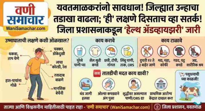 рд╡рд┐рджрд░реНрднрд╛рдд рд╕реВрд░реНрдпрд╛рдиреЗ рдЖрдЧ рдУрдХрд╛рдпрд▓рд╛ рд╕реБрд░реБрд╡рд╛рдд рдХреЗрд▓реА рдЕрд╕реВрди рдпрд╡рддрдорд╛рд│ рдЬрд┐рд▓реНрд╣реНрдпрд╛рдЪрд╛ рдкрд╛рд░рд╛ рекреж рдЕрдВрд╢рд╛рдВрдЪреНрдпрд╛ рдкрд╛рд░ рдЬрд╛рдгреНрдпрд╛рдЪреА рд╢рдХреНрдпрддрд╛ рдирд┐рд░реНрдорд╛рдг рдЭрд╛рд▓реА рдЖрд╣реЗ. рд╡рд╛рдврддреНрдпрд╛ рддрд╛рдкрдорд╛рдирд╛рдореБрд│реЗ рдЙрд╖реНрдорд╛рдШрд╛рддрд╛рдЪрд╛ (Heat Stroke) рдзреЛрдХрд╛ рд╡рд╛рдврд▓рд╛ рдЕрд╕реВрди, рдпрд╛ рдкрд╛рд░реНрд╢реНрд╡рднреВрдореАрд╡рд░ рдЬрд┐рд▓реНрд╣рд╛ рдЖрд░реЛрдЧреНрдп рдЕрдзрд┐рдХрд╛рд░реА рдбреЙ. рд╕реБрднрд╛рд╖ рдвреЛрд▓реЗ рдЖрдгрд┐ рдЬрд┐рд▓реНрд╣рд╛ рдкреНрд░рд╢рд╛рд╕рдирд╛рдиреЗ рдирд╛рдЧрд░рд┐рдХрд╛рдВрд╕рд╛рдареА рд╡рд┐рд╢реЗрд╖ рдорд╛рд░реНрдЧрджрд░реНрд╢рдХ рд╕реВрдЪрдирд╛ рдЬрд╛рд░реА рдХреЗрд▓реНрдпрд╛ рдЖрд╣реЗрдд. рдорд╛рд░реНрдЪрдкрд╛рд╕реВрдирдЪ рддрд╛рдкрдорд╛рдирд╛рдд рд╣реЛрдгрд╛рд░реА рд╡рд╛рдв рд╣реА рдзреЛрдХреНрдпрд╛рдЪреА рдШрдВрдЯрд╛ рдЕрд╕реВрди рдирд╛рдЧрд░рд┐рдХрд╛рдВрдиреА рдЖрд░реЛрдЧреНрдпрд╛рдЪреА рд╡рд┐рд╢реЗрд╖ рдХрд╛рд│рдЬреА рдШреЗрдгреНрдпрд╛рдЪреЗ рдЖрд╡рд╛рд╣рди рдХрд░рдгреНрдпрд╛рдд рдЖрд▓реЗ рдЖрд╣реЗ.